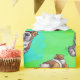 Les T-shirts de motif de têtes et de queues de chien de St Bernard, l'électronique, les cadeaux, et les accessoires comportent notre art original par l'illustrateur de nos enfants doués d'un amusement St Bernard de l'avant et du dos dans un motif sans couture d'amusement sur un arrière - plan bleu texturisé.