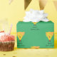 Un gars à puce Tortilla dans un costume Père Noël cheesy. Il dit qu'il est Nacho Santa Claus