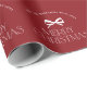 Trendy minimalist modern red white bow simple, elegant typography Merry Christmas name personalized holiday wrapping paper.