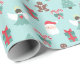 Nous avons ici un joli papier d'emballage qui présente Père Noël, un ange, un sapin de Noël, présent, un homme en pain d'épices et des sucres de canne sur un arrière - plan vert menthe. Ce papier est disponible en plusieurs tailles et correspond à d'autres papiers d'emballage, papiers de tissus, sacs cadeaux et une carte de voeux. Ceci est sûr de faire un complément parfait à vos cadeaux cette saison de vacances.