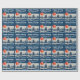 Navy Blue Winter Landscape Forest Moon Drawing Wrapping Paper. Calm winter snow landscape with forest. Happy holidays in a trendy script. Personalized the text or erase it.