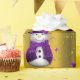 Un joli papier d'emballage de Noël en or coloré avec un motif de petits bonhomme de neige habillé de chapeaux et de gilets en velours violet, entouré d'étoiles d'or, pour donner à votre cadeau enveloppant cette saison de vacances une touche fantaisiste et élégante.