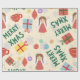 Noël 2022 moderne joli papier d'emballage rose rouge vert élégant pour enfants. Adorable pastel rose avec texte Joyeux Noël. Ce mignon Motif rose est une combinaison de petites filles, ornements, cadeaux, tasses rouges et flocons de neige gris.