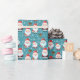 Papier d'emballage cadeau de Noël à Père Noël mignon. Joli petit Santas sur un arrière - plan bleu clair.
