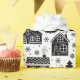 Ce joli papier d'emballage de vacances présente un motif de maisons noires, de pins et de flocons de neige sur un arrière - plan blanc. Utilisation pour l'emballage cadeau ou pour l'artisanat en papier, y compris le découpage. De nos coeurs à vos Joyeuses Vacances !