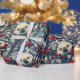 Papier d'emballage joli et festif avec un motif de koalas bleus et crème et de baies rouge vif.
