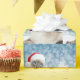 Le chat siamois de minou de point bleu met un casquette de Père Noël pour obtenir dans le papier d'emballage de vacances d'amoureux de les chats d'esprit de Noël