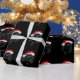 Visage noir de cocker portant un papier d'emballage de Noël d'amoureux de les chiens de casquette du père noël