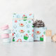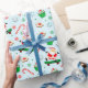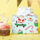 Skateboard cadeau de vacances et décoration de fête de Noël avec dessin animé Père Noël patineur entouré de flocons de neige, bonbons de Noël et biscuits.