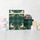 Célébrez la saison des vacances magique et de fête avec notre papier d'emballage de vacances faites sur commande. Nos caractéristiques de conception élégantes de vacances un motif vert audacieux de plaid de buffle avec la guirlande majestueuse de laurier de renne d'or de faux avec la conception personnalisée de monogramme de famille. Toutes les illustrations contenues en ces renne majestueux et papier d'emballage de plaid de motif vert de Noël sont les illustrations originales tirées par la main par Moodthology.