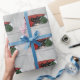 Chat chaton aux cheveux longs noir et blanc s'est mis tout à l'aise dans un sac de Noël et ose à n'importe qui de faire quoi que ce soit à ce sujet amoureux de les chats Noël papier d'emballage