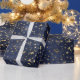 Elégant luxe festif chic Noël Cadeaux drapeaux en trois couleurs : vert festif, bleu foncé et rouge bordeaux foncé avec or - couleur or (pas de véritable effet or) étoiles motif.