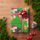 Papier d'emballage de joli cheval avec un cheval mignon un casquette de Père Noël de port" avec accrocher et la salutation "Joyeux Noël d'ornements !" à travers le papier entier d'enveloppe de cadeau.
