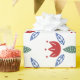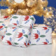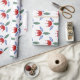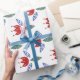 Papier Cadeau Noël floral bleu rouge scandinave de motif
