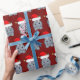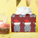 Papier d'emballage de Noël hippopotame rouge adorable avec un hippo de vacances amusant portant un casquette du Père Noël mignon.