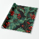 Motif de Noël contemporain classique avec branches de plantes saints et baies rouges