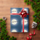 Cet emballage patriotique de Noël des Fêtes militaires met en vedette le Père Noël et son traîneau tiré par une équipe de chasseurs F-16 Fighting Falcon avec un arrière - plan de pleine lune. -