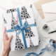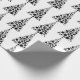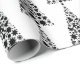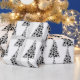 Un sapin de Noël noir élégant et moderne sur un arrière - plan blanc mis dans un papier d'emballage motif pour les vacances.