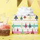 Moderne, rétro, papier cadeau de Noël rose et bleu coloré avec un motif d'arbre de pin unique pop-art mignon.