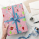 Ornements rétro Papier d'emballage de Noël rose avec plusieurs billes vintages peintes à la main dans des couleurs rétro, le tout sur un starburst rose et un arrière - plan motif atomique. Un emballage cadeau super amusant pour décorer votre cadeau sous cet arbre de Noël de cette année. Vous pouvez rendre le motif sur le papier d'emballage plus petit ou plus grand.