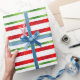 Papier Cadeau Noël rouge blanc et vert rayé