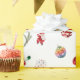Le papier d'emballage présente un thème de vacances simple et élégant. Une mince branche ornée de divers ornements suspendus, dont un renne, une boule de couleur arc-en-ciel, des billes à motifs, un champignon et une figurine de Père Noël, apporte une touche fantaisiste et festive.