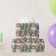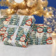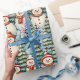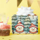 Enveloppement de Noël avec des bonhomme de neige en écharpes rouges chaudes, des casquettes tricotés chauds et un joli arrière - plan de pin vert.
