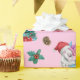 Ce papier d'emballage de Noël présente une belle aquarelle illustration de deux licornes magiques dans les chapeaux de Santa, ainsi que des arbres de Noël et d'autres éléments de Holiday.