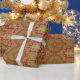Papier Cadeau Noël vert magenta rouge d'or fleuri classique