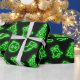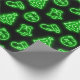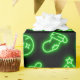 Un motif sans faille des éléments de Noël Neon Green, y compris les arbres de Noël, les cloches, les bas et les ornements sur un arrière - plan noir