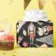 Nutcracker Ballet cadeau de Noël enveloppé avec des personnages de ballet de noix de cétreuse et des symboles sur l'arrière - plan noir.