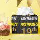 Ce papier d’emballage comporte un message comme "FIRSTNAME’S 19th BIRTHDAY!", avec le "19th" ayant une apparence de couleur fausse/imitation or, et avec le nom et "BIRTHDAY" dans une police amusante et audacieuse. Le nom peut être personnalisé, et l'arrière - plan est de couleur noire. Un papier comme celui-ci pourrait peut-être être utilisé pour envelopper les cadeaux d'anniversaire donnés à quelqu'un pour célébrer son dix-neuvième anniversaire. [~Z0000203]
