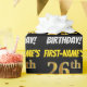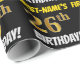 Ce papier d’emballage comporte un message comme "FIRST-NAME’S 26th BIRTHDAY!", avec le "26th" ayant une apparence de couleur fausse/imitation or, et avec le nom et "BIRTHDAY" dans une police amusante et audacieuse. Le nom peut être personnalisé, et l'arrière - plan est de couleur noire. Un papier comme celui-ci pourrait peut-être être utilisé pour envelopper les cadeaux d'anniversaire donnés à quelqu'un pour célébrer son vingt-sixième anniversaire. [~Z0000203]