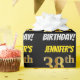 Ce design papier d’emballage comporte un message comme "38e anniversaire de JENNIFER!", avec le "38e" ayant une apparence de couleur fausse/imitation or, et avec le nom et "ANNIVERSAIRE" dans une police amusante et audacieuse. Le nom peut être customisé, et l'arrière - plan est noir de couleur. Un papier comme celui-ci pourrait peut-être être utilisé pour envelopper les cadeaux d'anniversaire donnés à quelqu'un pour célébrer son trente-huitième anniversaire. [~Z0000203]