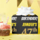 Ce design papier d’emballage comporte un message comme "47e anniversaire de JENNIFER!", avec le "47e" ayant une apparence de couleur fausse/imitation or, et avec le nom et "ANNIVERSAIRE" dans une police amusante et audacieuse. Le nom est personnalisable, et l'arrière - plan est noir de couleur. Un papier comme celui-ci pourrait peut-être être utilisé pour envelopper les cadeaux d'anniversaire donnés à quelqu'un pour célébrer leur quarante-septième anniversaire. [~Z0000203]