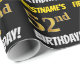 Ce design papier d’emballage comporte un message comme "FIRSTNAME’S 52nd BIRTHDAY!", avec le "52nd" ayant une apparence de couleur fausse/imitation or, et avec le nom et "BIRTHDAY" dans une police amusante et audacieuse. Le nom peut être personnalisé, et l'arrière - plan est de couleur noire. Un papier comme celui-ci pourrait peut-être être utilisé pour envelopper les cadeaux d'anniversaire donnés à quelqu'un pour célébrer son cinquante-deuxième anniversaire. [~Z0000203]