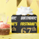 Ce design papier d’emballage comporte un message comme "FIRSTNAME’S 67th BANTHDAY!", avec le "67th" ayant une apparence de couleur fausse/imitation or, et avec le nom et "BANTHDAY" dans une police amusante et audacieuse. Le nom peut être personnalisé, et l'arrière - plan est de couleur noire. Un papier comme celui-ci pourrait peut-être être utilisé pour envelopper les cadeaux d'anniversaire donnés à quelqu'un pour célébrer son soixante-septième anniversaire. [~Z0000203]