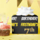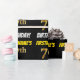 Ce design papier d’emballage comporte un message comme "FIRSTNAME’S 7th BIRTHDAY!", avec le "7th" ayant une apparence de couleur fausse/imitation or, et avec le nom et "BIRTHDAY" dans une police amusante et audacieuse. Le nom peut être personnalisé, et l'arrière - plan est de couleur noire. Un papier comme celui-ci pourrait peut-être être utilisé pour envelopper les cadeaux d'anniversaire donnés à quelqu'un pour célébrer leur septième anniversaire. [~Z0000203]