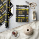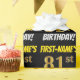 Ce papier d’emballage comporte un message comme "FIRST-NAME’S 81st BANTHDAY!", avec le "81st" ayant une apparence de couleur fausse/imitation or, et avec le nom et "BANTHDAY" dans une police amusante et audacieuse. Le nom peut être personnalisé, et l'arrière - plan est de couleur noire. Un papier comme celui-ci pourrait peut-être être utilisé pour envelopper les cadeaux d'anniversaire donnés à quelqu'un pour célébrer leur quatre-vingts premier anniversaire. [~Z0000203]