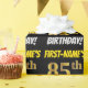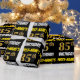 Ce papier d’emballage comporte un message comme "FIRST-NAME’S 85th BIRTHDAY!", avec le "85th" ayant une apparence de couleur fausse/imitation or, et avec le nom et "BIRTHDAY" dans une police amusante et audacieuse. Le nom est personnalisable, et l'arrière - plan est noir de couleur. Un papier comme celui-ci pourrait peut-être être utilisé pour envelopper les cadeaux d'anniversaire donnés à quelqu'un pour célébrer leur quatre-vingt-cinquième anniversaire. [~Z0000203]