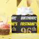 Ce papier d’emballage comporte un message comme "FIRSTNAME’S 96th BIRTHDAY!", avec le "96th" ayant une apparence de couleur fausse/imitation or, et avec le nom et "BIRTHDAY" dans une police amusante et audacieuse. Le nom peut être personnalisé, et l'arrière - plan est de couleur noire. Un papier comme celui-ci pourrait peut-être être utilisé pour envelopper les cadeaux d'anniversaire donnés à quelqu'un pour célébrer leur quatre-vingt-seize ans. [~Z0000203]