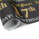 Ce design papier d’emballage comporte un message comme "17e anniversaire de prénom!", le "17e" ayant une apparence de couleur fausse/imitation or. Le nom peut être personnalisé, et l'arrière - plan est de couleur noire. Il pourrait peut-être être utilisé pour envelopper les cadeaux donnés pour le dix-septième anniversaire de quelqu’un. [~Z0000177]