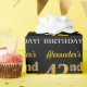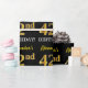 Ce design papier d’emballage comporte un message comme "42e anniversaire d’Alexandre!", le "42e" ayant une apparence de couleur fausse/imitation or. Le nom peut être customisé, et l'arrière - plan est noir de couleur. Il pourrait peut-être être utilisé pour envelopper les cadeaux donnés pour le quarante-deuxième anniversaire de quelqu’un. [~Z0000177]