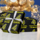 Papier Cadeau Noir & Jaune rayé "4"; 4e anniversaire + nom