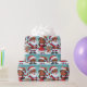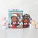 Papier d'emballage festif avec un joyeux M. Claus à la peau brune dans son costume rouge classique et Mme Claus dans une robe de vacances, tous deux agitant avec joie. L'arrière - plan présente une scène de village enneigé avec des rennes ludiques, créant une atmosphère joyeuse. Le design capte l'essence de la joie de fêtes, le rendant parfait pour envelopper des cadeaux de Noël spéciaux.