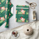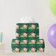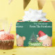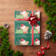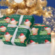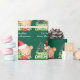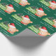 Papier de Noël mignon avec ours bébé portant chapeau de Père Noël et arbre de Noël sur arrière - plan vert. Emballage idéal pour les enfants avec leur nom.
