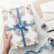 Papier Cadeau Nom du baptême Date Cross Dove Spring Flowers
