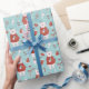 Joli papier d'emballage d'ours polaire personnalisé avec un nom ou tout texte personnalisé. Idéal pour envelopper des cadeaux pour bébé ou enfants pour Noël ou les Fêtes, avec des animaux mignons et des illustrations hivernales dans le sang orange ou rouge doux et vert aqua.