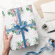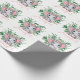 Nom personnalisé modèle, Verdure aquarelle, Fille bébé éléphante aux fleurs roses, Papier à enveloppement blanc