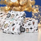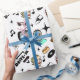 Emballage cadeau à thème Anniversaire ou Anniversaire des années cinquante avec des graphiques d'albums vinyles, des notes musicales, un couple de danse, des milk-shakes, conduire en signe, tvs hotdogs et d'autres images amusantes rétro.